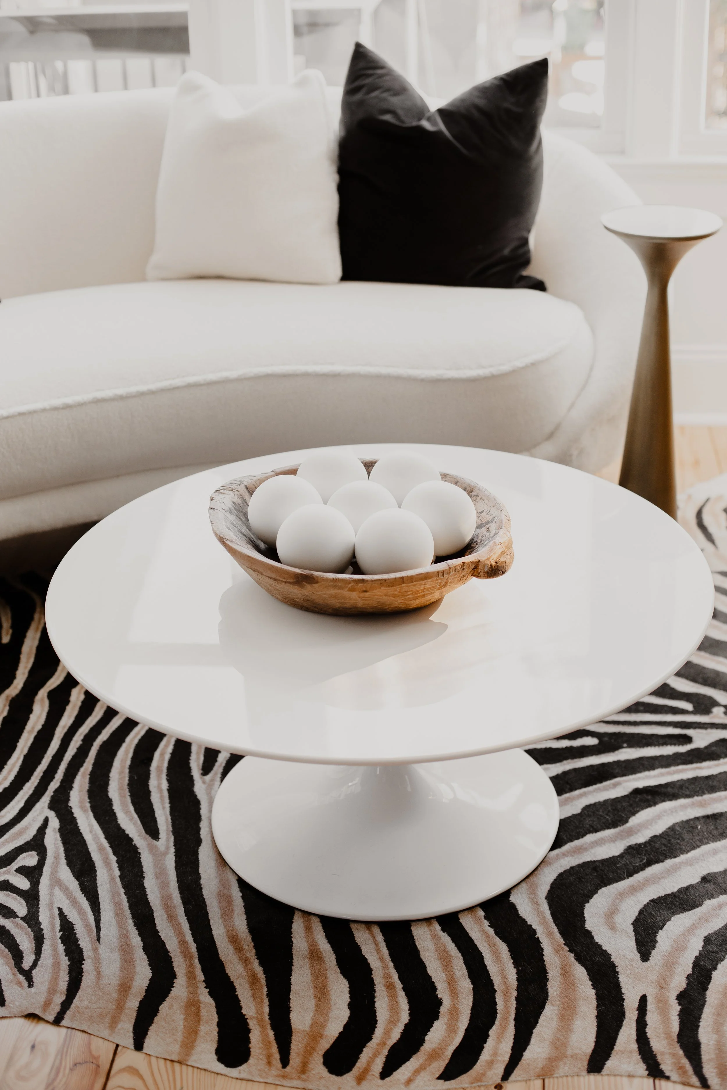 Decorative Wood Bowl // Option 1 - Ornaments turned Decor! // Option 2 - Marble Spheres // Side Table Look Alike // Coffee Table (oval version) //